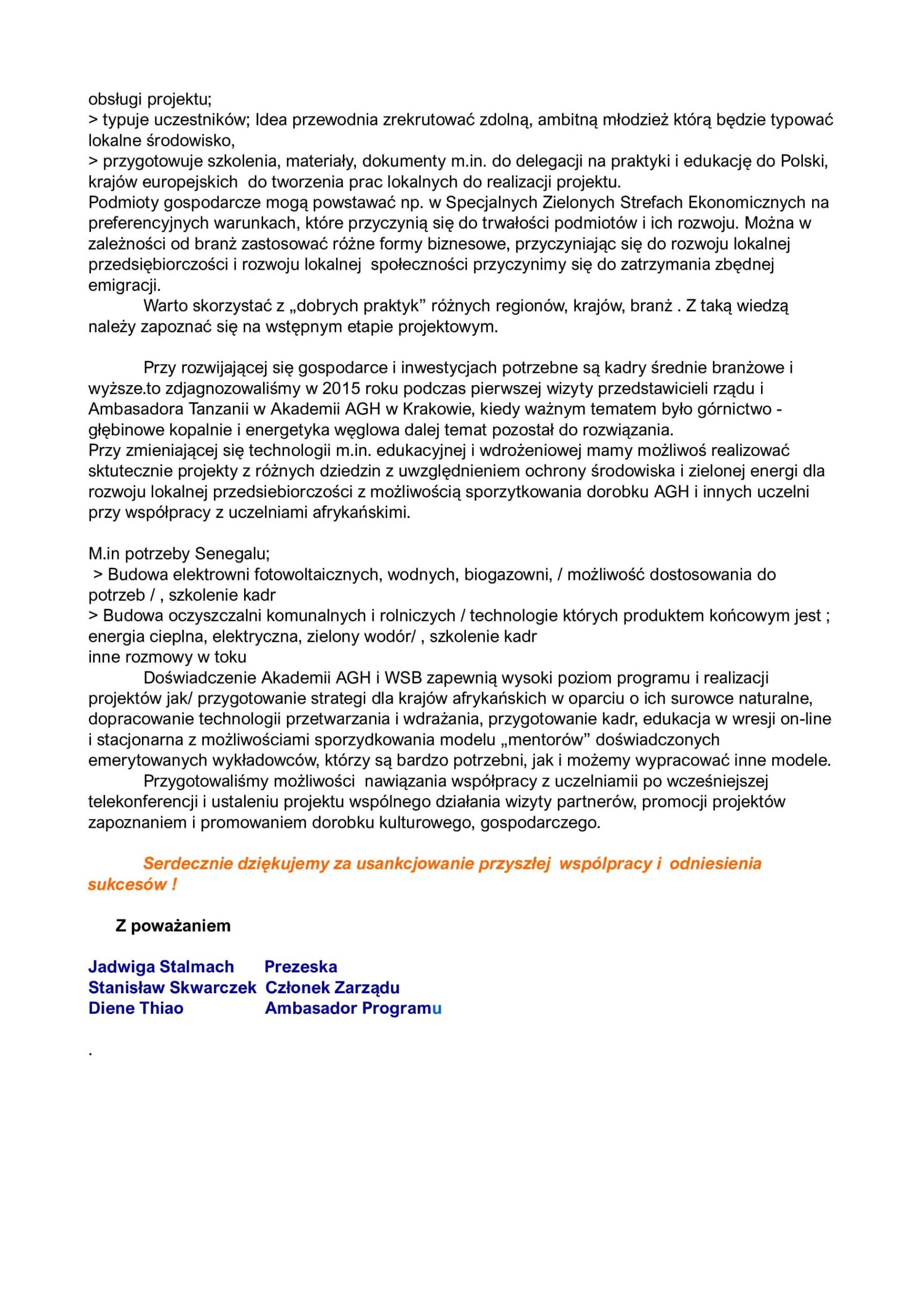 1. Partnerem z którym podjęto realizację szeroko zakrojonych aktywności, które znajdują swe miejsce w programie Green Bridge Partnership Afryca-Europe jest Stowarzyszenie Unijny Fundusz Przedsiębiorczych. Jej misją jest EDUKCJA nastawiona na CEL – PRZEDSIĘBIORCZOŚĆ.
